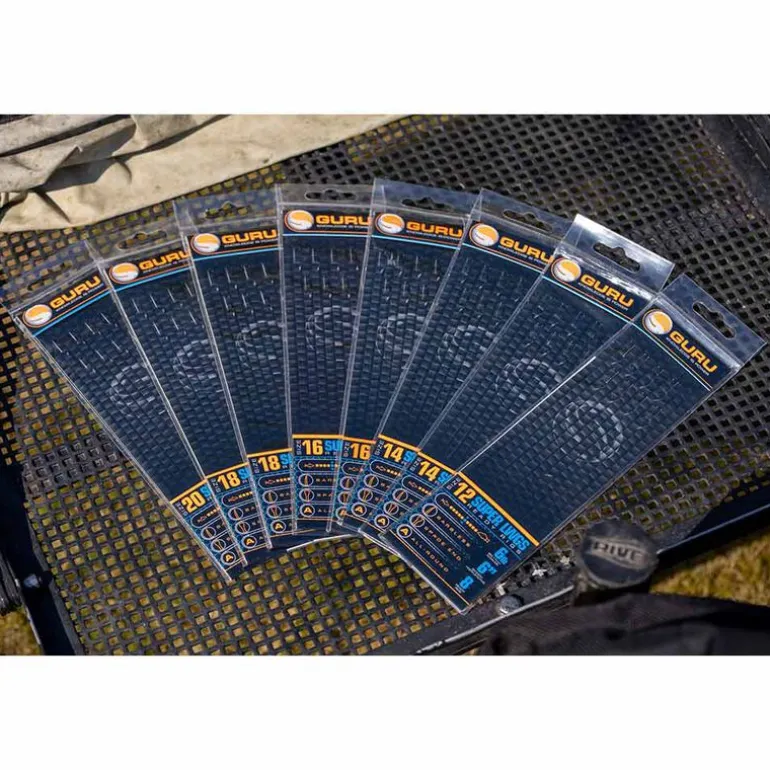 Chaque paquet de montages Guru Ready Rigs contient un guide des tailles d’hameçons, permettant aux pêcheurs d’identifier rapidement la taille idéale pour l’espèce ciblée. Ce guide facilite le choix du montage, notamment pour les pêcheurs débutants, en fonction de l’espèce désirée. Fini les approximations: vous pêchez avec le matériel adapté.