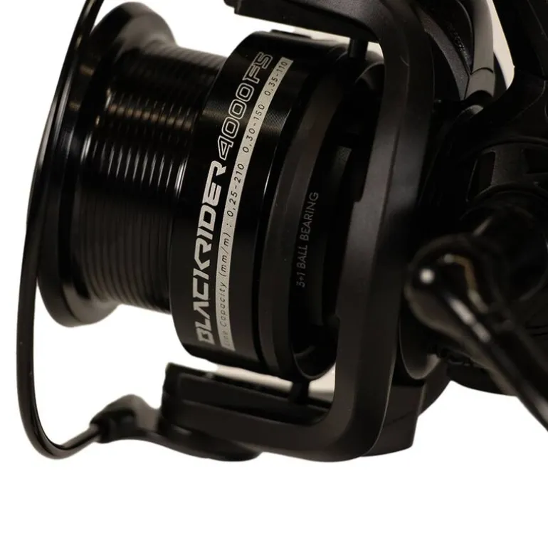 Le BLACKRIDER 4000 FS est un moulinet débrayable spécialement conçu par TEOS pour la pêche au feeder des carpes et gros poissons. Ce moulinet dispose de toutes les caractéristiques nécessaires à la traque des beaux poissons : un frein puissant et progressif, un pick-up renforcé, une grosse récupération ou encore un système de débrayage de la bobine.