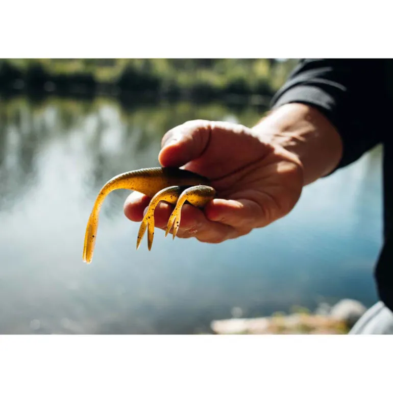 Si ce dernier se relève être d’une grande efficacité sur tête plombée classique, c’est également équipé d’un hameçon texan qu’il dévoilera sa superbe en pêchant façon “soft jerkbait”, en imprimant des petites tirées sèches pour le faire virevolter de gauche à droite. Son spectre d’utilisation est donc TRÈS large (drop-shot, ned rig, verticale, weightess, linéaire, carolina, ..), tout autant que les espèces qu’il convoite, allant de la perche aux brochets en passant par les black-bass et les sandres.