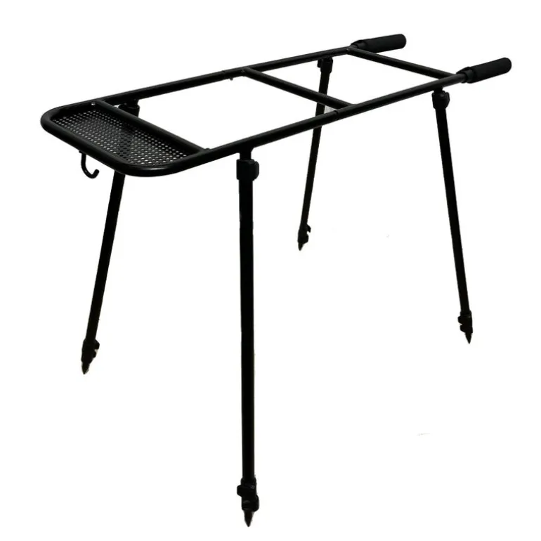 Un support complet avec les 4 pied réglable en hauteur, deux emplacement seau et un crochet qui vous permettra de pouvoir accrocher une pelle à appâts par exemple.