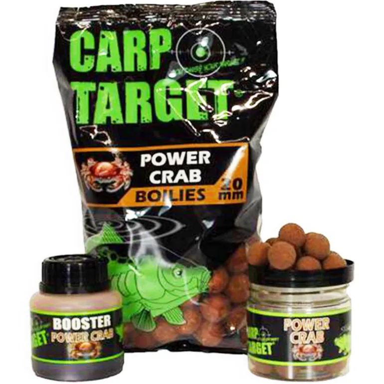 Pack d’appâts pour la pêche à la carpe composé de 1 kg de bouillette 20 mm ainsi que du booster et des pops up le tout dans l’arome Power Crab .