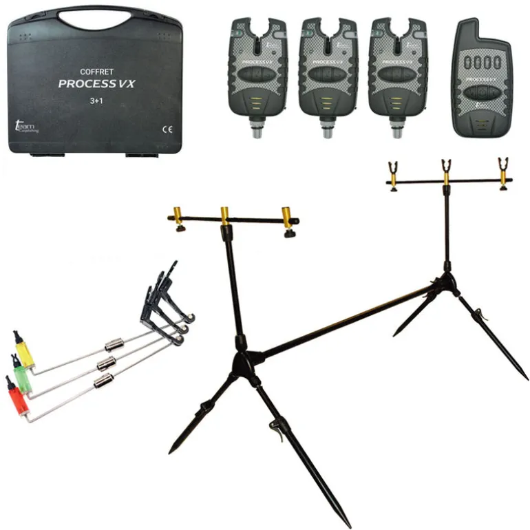 LeCoffret Process VX 3+1de chezTeam Carpfishingest un coffret de 3 détecteurs avec une centrale sans fil. Pratique avec la centrale, cela vous permettra ainsi de pouvoir être averti même en cas d’éloignement de vos cannes ou bien de pratiquer votre passion lors de pêches nocturnes. Chaque détecteur du coffret est doté d’un réglage du volume, tonalité et de la sensibilité. De ce fait, cela vous permettra d’adapter le réglage que vous souhaitez ou bien afin de vous adapter aux situations rencontrées au bord de l’eau.