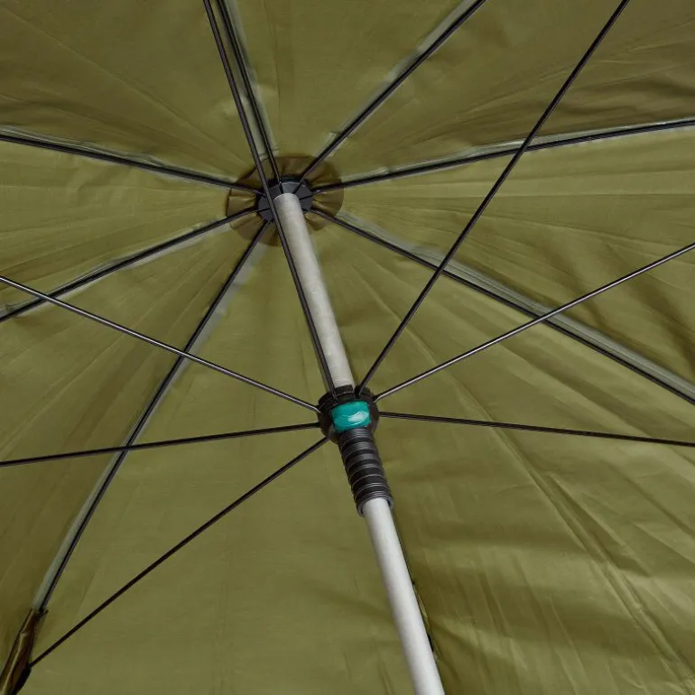 - Mât central en aluminium amovible, peut être fixé parallèlement à l’arrière du brolly permettant de l’enfoncer dans le sol pour ajouter de la stabilité.