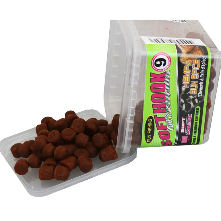 Les seuls pellets qui tiennent à l’hameçon même en cas de ferrage dans le vide ! Ces pellets d’eschage SOFT HOOK PELLETS HEMP AND BUN SPICE très haut de gamme sont riches en acides aminés libres et en acides gras essentiels. Leur attractivité est renforcée par l’utilisation d’huile de saumon, de bétaïne, d’Amino Concentrate et de stimulateurs d’appétit. Grâce à leur texture moelleuse, ils peuvent être eschés sans élastique et tiennent parfaitement à l’hameçon. Ils peuvent aussi être utilisés pour le feeder ou l’anglaise. Diamètres disponibles : 6 mm et 9 mm.
