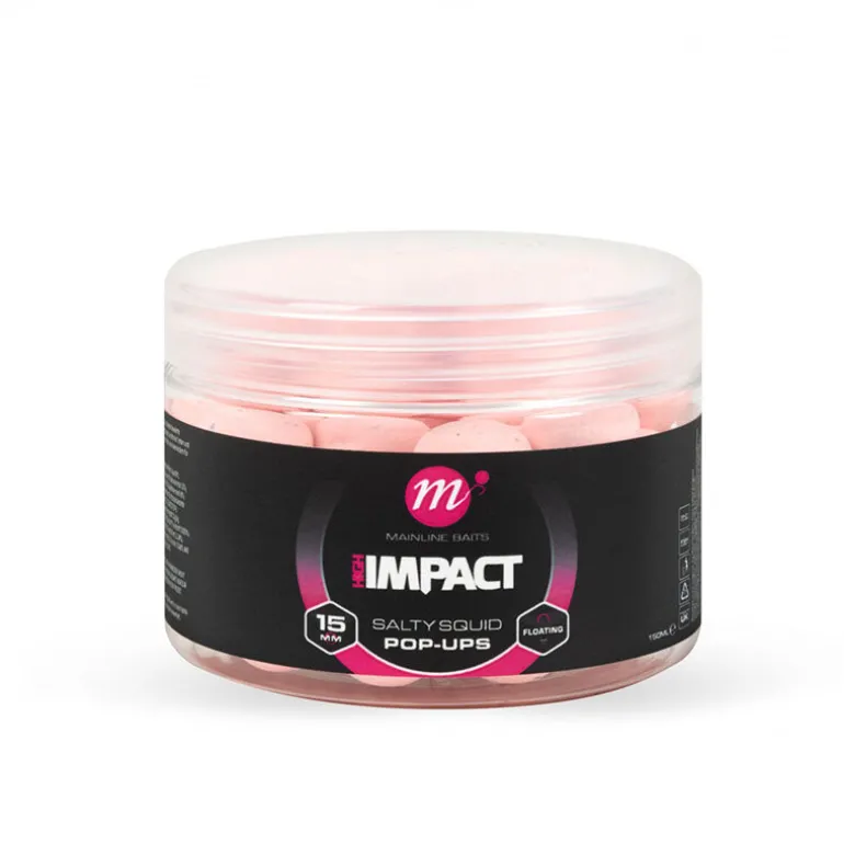 Les Mainline Hi Impact Salty Squid Pop-Ups 15mm ont été spécialement développés pour compléter parfaitement la gamme de bouillettes Hi Impact, en offrant une flottabilité constante, durable et parfaitement fiable. Ils garantissent une présentation irréprochable du montage, essentielle lorsque les conditions de pêche évoluent au fil des saisons et des plans d’eau.