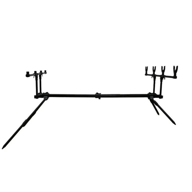 Sa conception entièrement réglable permet d’ajuster aussi bien la longueur de la barre centrale que l’inclinaison des pieds, offrant une grande liberté pour orienter les cannes vers le haut, vers le bas ou à plat, selon les conditions de pêche. Les buzz bars rétractables assurent un encombrement réduit lors du transport, tout en garantissant une excellente stabilité une fois en poste.