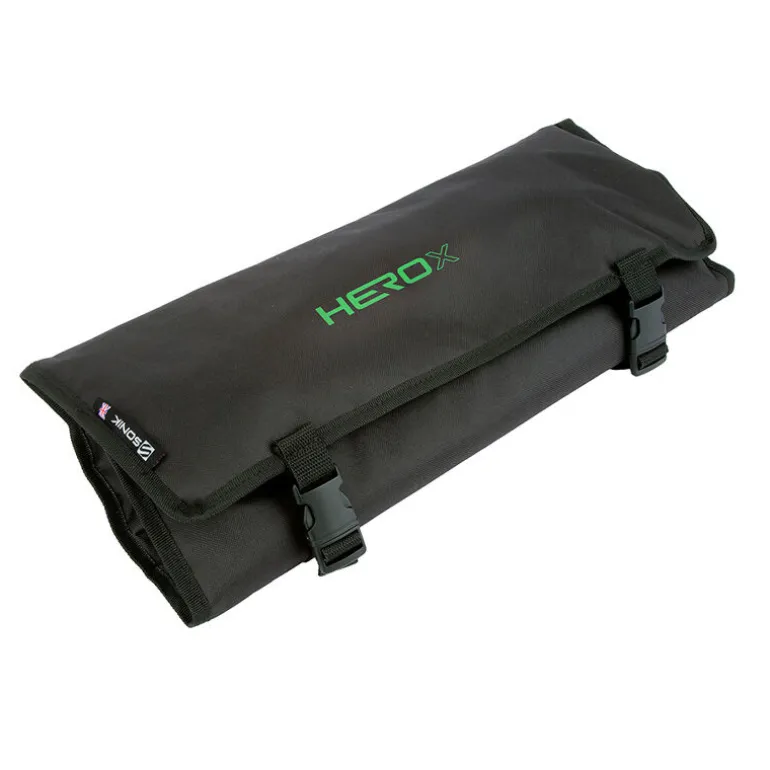 Il est livré dans une housse de transport rembourrée pliable très pratique, qui permet de ranger le rod pod tout en conservant les alarmes et back rests montés sur les buzz bars. Les buzz bars type goal post et les banksticks peuvent également être utilisés sans la base, idéal sur les sols plus souples. Avec sa finition noir mat élégante, le Herox 2 Rod Pod est un choix fiable et polyvalent pour les pêcheurs recherchant un support performant sans encombrement.