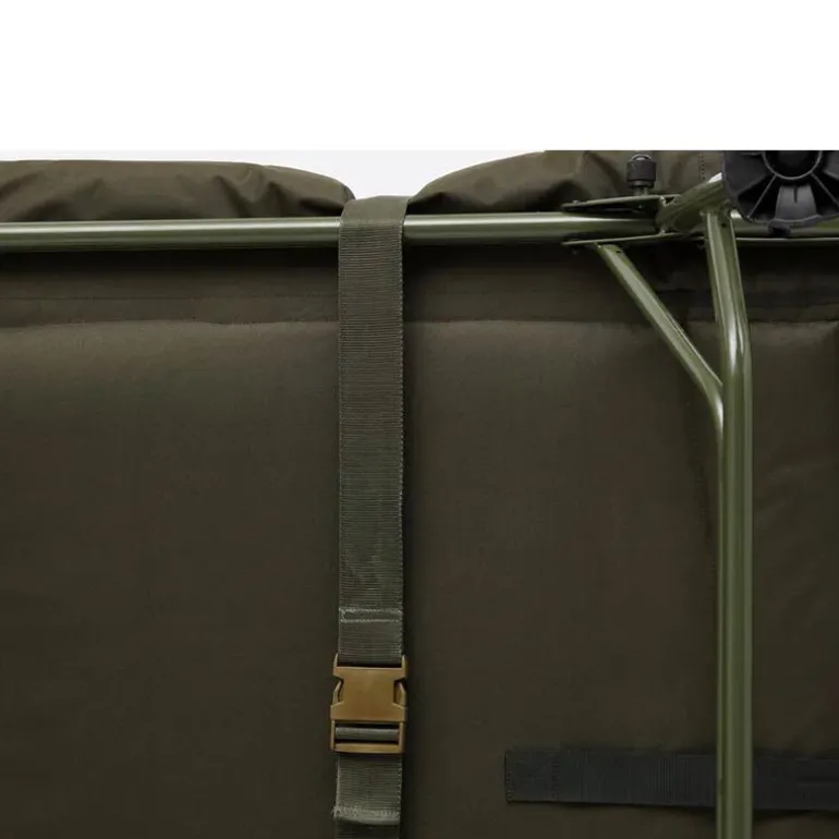 Équipé d’un système d’attaches élastiques au niveau de la tête et du pied du bedchair, ainsi que d’une sangle centrale ajustable, le sac reste parfaitement en place sans glisser ni se tasser. Les zips robustes, rapides d’accès, placés de chaque côté, sont associés à un dispositif anti-blocage afin d’assurer une sortie immédiate lorsque l’alarme se déclenche.
