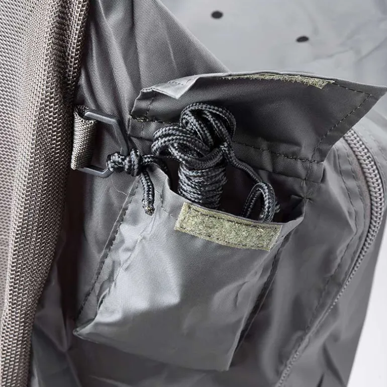 Le sling est équipé de flotteurs pleine longueur avec 4 bandes réfléchissantes night-sight, d’un zip n°10 robuste avec clip de sécurité, et d’une barre de tension pour une mise à l’eau et un retrait rapides. Il est livré avec une corde de retenue de 5 m avec attache bankstick, ainsi qu’un sac de transport à cordon.