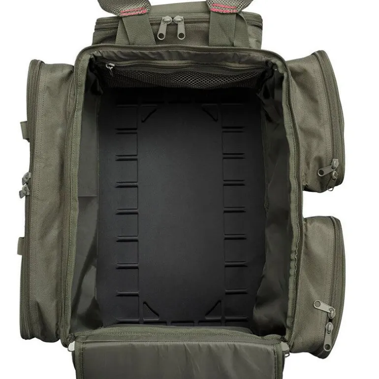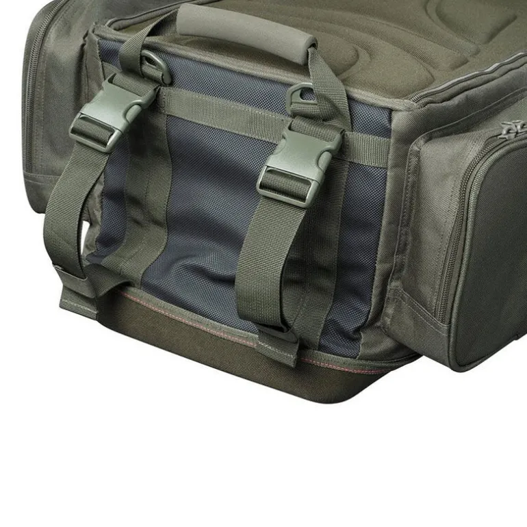 Confortable et pratique, il est équipé d’un panneau dorsal matelassé, de bretelles ajustables, d’une sangle de poitrine réglable et de poignées latérales renforcées. Deux clips externes permettent également de fixer une épuisette ou une élingue de pesée, complétant une conception parfaitement pensée pour les besoins modernes du carpiste mobile.