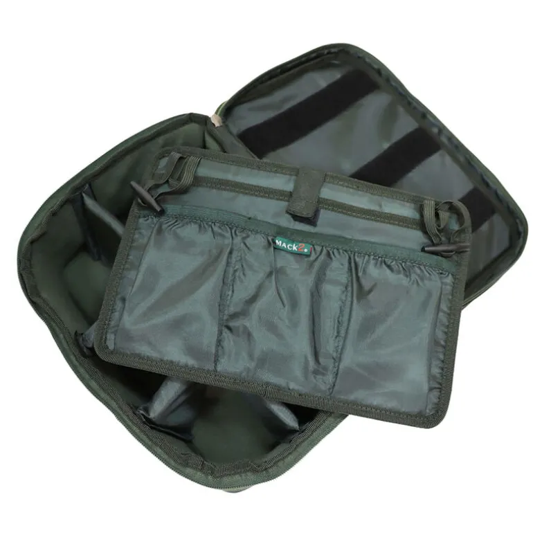 Il dispose également d’une planche fixé par scratch dans le sac que vous pouvez détacher pour la fixé par élastique sur le bed chair afin de pouvoir avoir à disposition sur le bed chair votre powerbank et le cable pour charger votre téléphone par exemple.