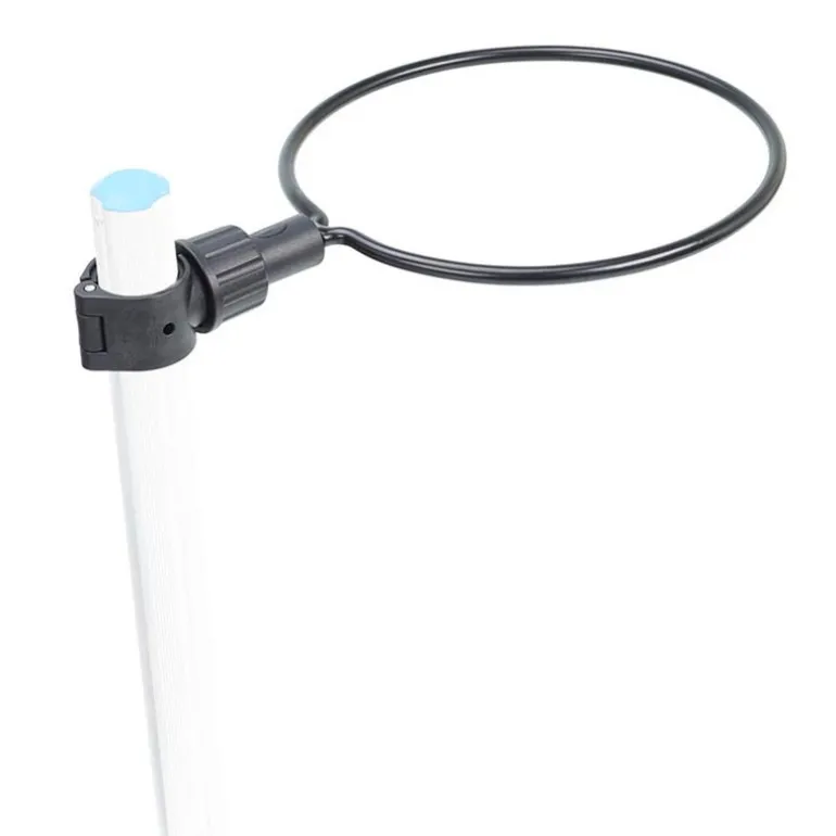 Le support pour cuvette compactable se positionne facilement sur des pieds de 25, 30 ou 36 mm. Il intègre le nouveau système exclusif Garbolino Multigrip Open Compact, qui permet une fixation sans vis ni écrou grâce à une pièce épurée moulée, éliminant tout risque de coincement du fil.
