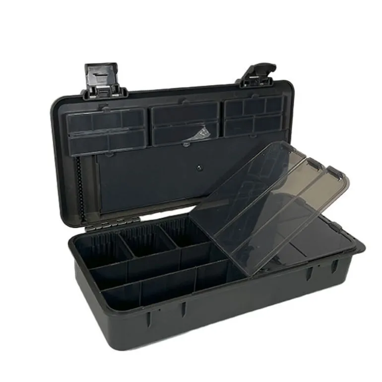 Dotée de nombreux compartiments spacieux et intelligemment agencés, la MasterCarp XL permet de ranger soigneusement tous vos accessoires, y compris les montages, plombs, aiguilles, stops, et autres éléments essentiels. Son double étage avec plateaux amovibles et son couvercle rigide assurent une organisation optimale et une protection efficace contre les chocs et l’humidité.