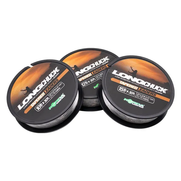 Il existe trois combinaisons différentes de Long Chuck Tapered Leader, ce qui vous permet de l’adapter à la résistance à la rupture de la ligne principale que vous utilisez, garantissant ainsi le nœud de jonction le plus net possible et réduisant également le risque de » craquage » (cela se produit généralement lorsque des lignes de différents diamètres sont jointes et qu’il y a un changement soudain dans la façon dont elles sortent du moulinet par l’anneau de tête). Chaque tête de ligne mesure 10 m de long et comprend 8 m de ligne de 30 lb/0,47 mm de résistance à la rupture, afin d’absorber la force du lancer et de protéger le poisson grâce à sa résistance à l’abrasion – idéale pour la pêche sur les graviers ou rochers – puis les 2 derniers mètres passent de 0,47 mm (30 lb) à 0,27 mm (10 lb), 0,30 mm (12 lb) ou 0,33 mm (15 lb) de diamètre, selon la version que vous choisissez.