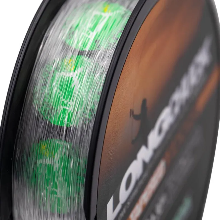 Les têtes de ligne coniques présentent les mêmes propriétés que le fil principal Long Chuck, à savoir une très faible extensibilité pour faciliter la compression de la canne (les mono lourds sont généralement assez extensibles et gênent le lancer), une faible absorption d’eau, un poids léger pour sa résistance à la rupture, car il est transparent, de sorte qu’il reste en l’air plus longtemps, et un rapport tension résistance à a rupture/diamètre élevé pour réduire la traînée. Chaque bobine contient cinq têtes de ligne.