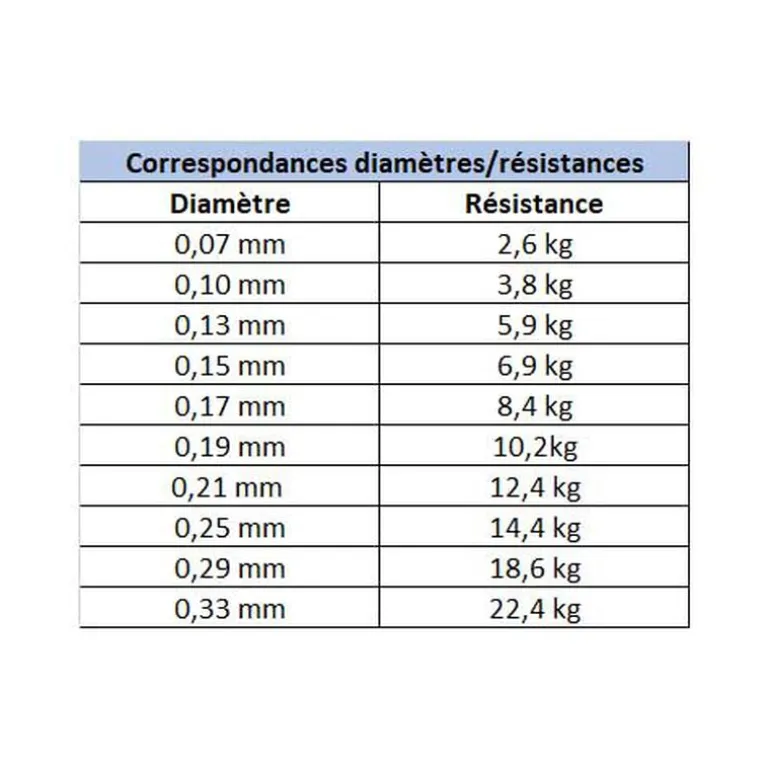Correspondance diamètre / résistance :