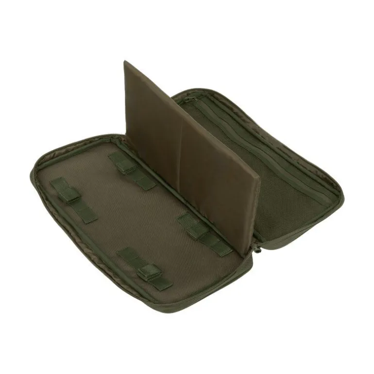 Le sac Trakker NXG Buzzer Bar Bag a été conçu pour protéger vos alarmes et repose-cannes arrière lorsqu’ils sont fixés à vos buzzbars. Convient pour des configurations de buzzbars 2 et 3 cannes jusqu’à 38 cm, selon la taille de l’alarme. Doté d’une poche intérieure zippée pour ranger les accessoires d’alarmes tels que des piles de rechange et des indicateurs de touche, il dispose également de sangles réglables pour s’adapter à une large gamme de tailles de buzzbars. Le coussin de protection intérieur sépare vos alarmes de la poche d’accessoires, et à l’arrière du coussin se trouvent des boucles élastiques pour ranger six piques. Protection très bien rembourrée, fermetures éclair robustes à double sens, fabriqué en tissu durable n-dura, et poignée pour le transport.